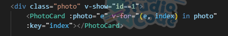 进入wallMessage.vue,创建上文同样的id(),并删去data()中的id,此时id由两个按钮控制,title和label可以动态响应。(记得给card组件加上v-show=”id==0”)