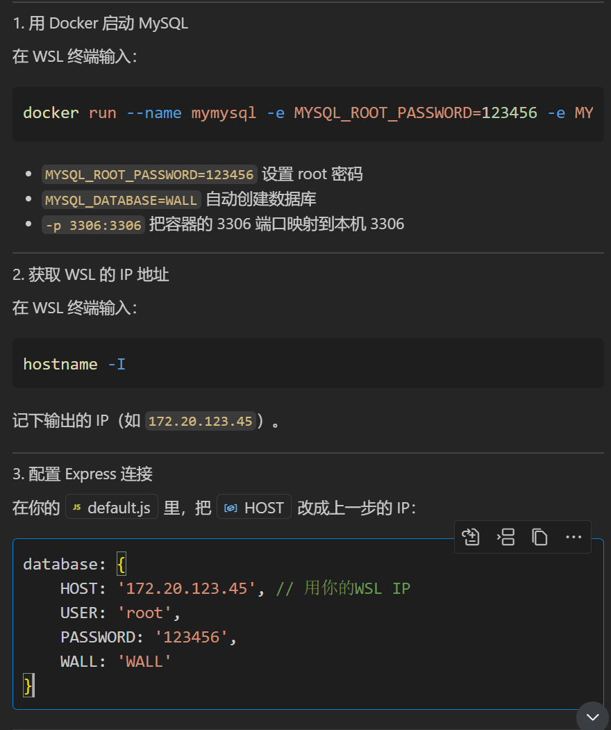 docker run --name yikeSql -e MYSQL_ROOT_PASSWORD=123456 -e MYSQL_DATABASE=WALL -p 3306:3306 -d mysql:8.0